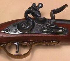 This is a replica of the classic British rifle used throughout the American Revolution by both sides. The bayonet is removable. The action works (the hammer locks back and is released by the trigger.) This piece is made entirely of wood and metal. THIS IS ONE OF THE PERFECT PIECES FOR LES MISERABLES. 3 in stock DIMENSIONS: