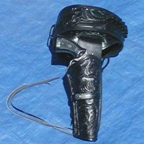 Available in black or brown; in left handed or right handed. These fit both the Colt Peacemakers - both blank firing and non-firing. Drop belts like the one below come in waist sizes 32-38 - smaller or larger sizes will have a carbine belt and attached holster.